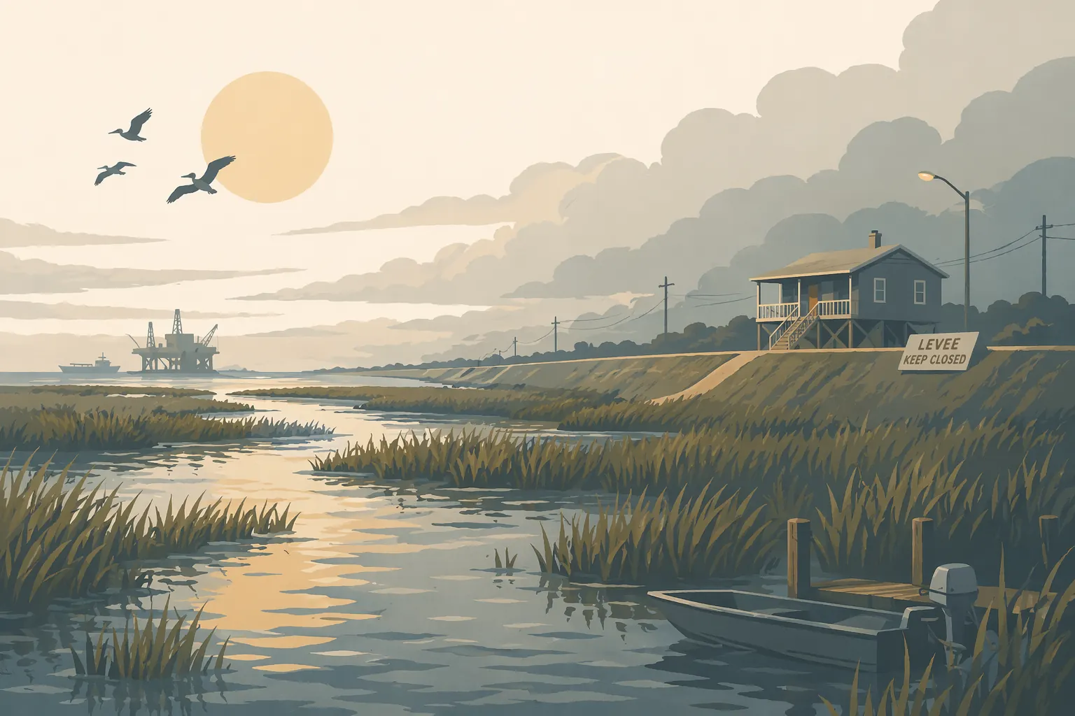 Land loss, slow drainage, and one of the most structurally vulnerable coastlines in North America.